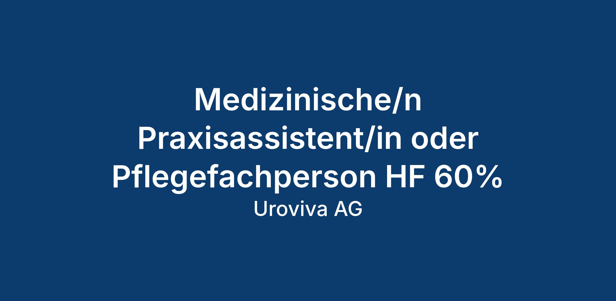 Medizinische/n Praxisassistent/in oder Pflegefachperson HF 60%